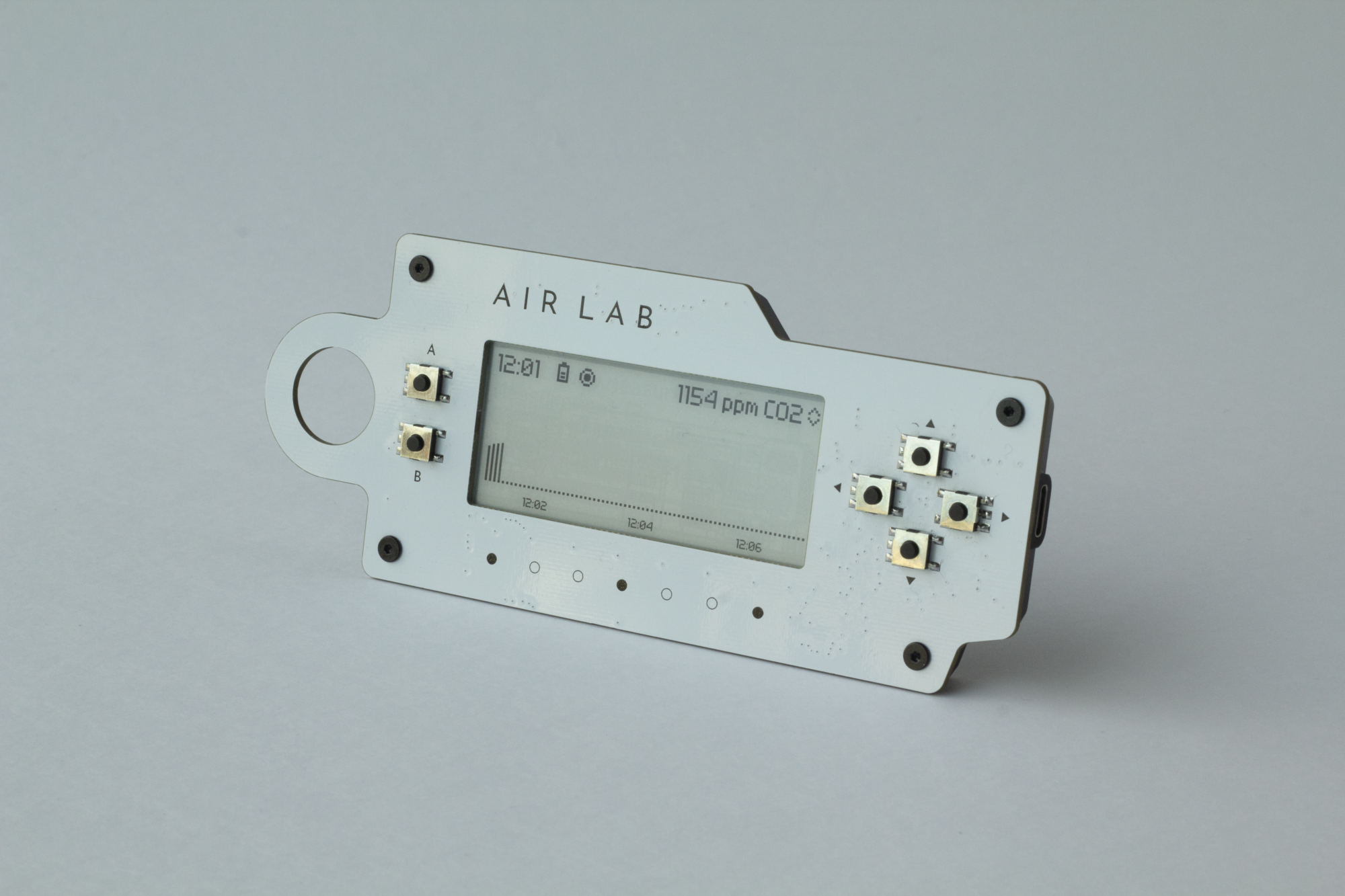 The Air Lab allows you to measure the CO2 content of the air, temperature and relative humidity.
