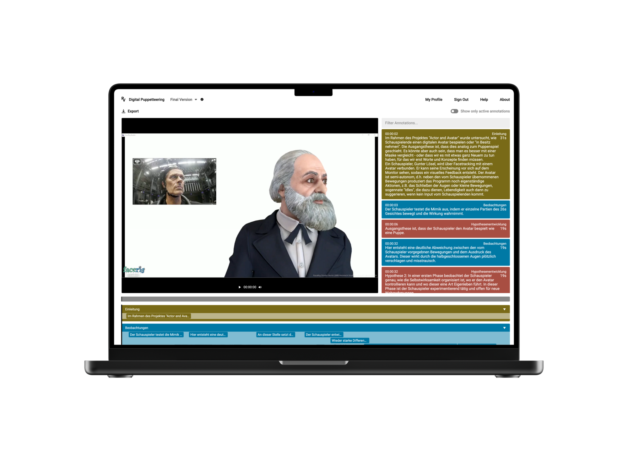 An optimized interface for annotating videos as part of a research project on performative studies.